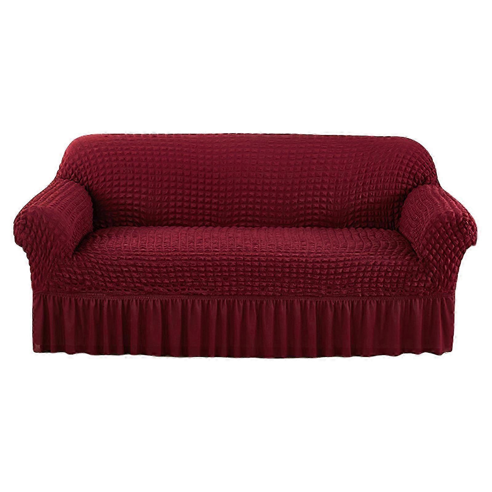 Stretch Seersuckers Sofa Cover with Skirt Soft Thick Couch Cover Detachable Washable Nonslip 3 Seats Protectors