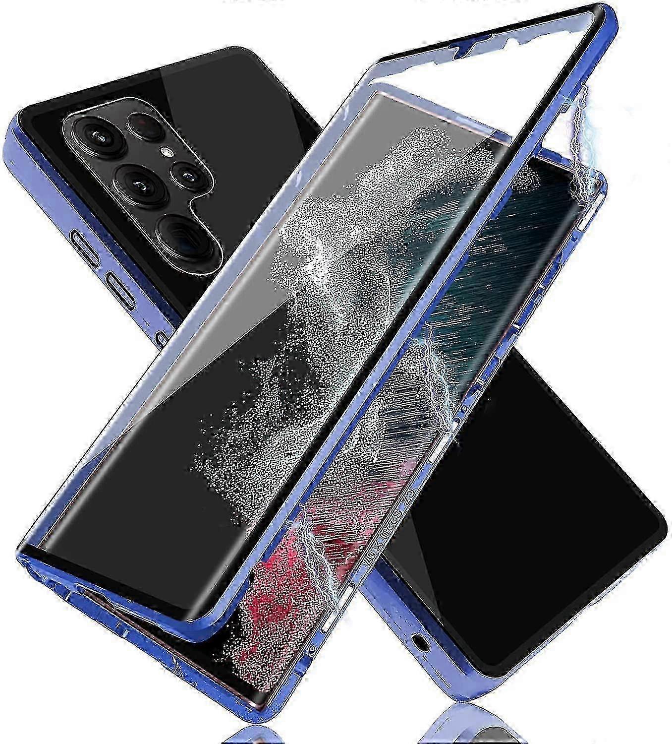 Metal Magnetic Case Compatible With Samsung Galaxy S22 Ultra, Double Sided Tempered Glass Cover