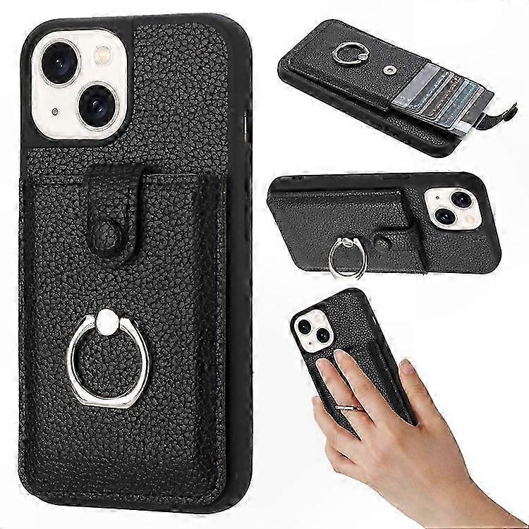 Leather Back Cover with Card Slots and Kickstand for 14/13 Inch Devices - Litchi Texture Design
