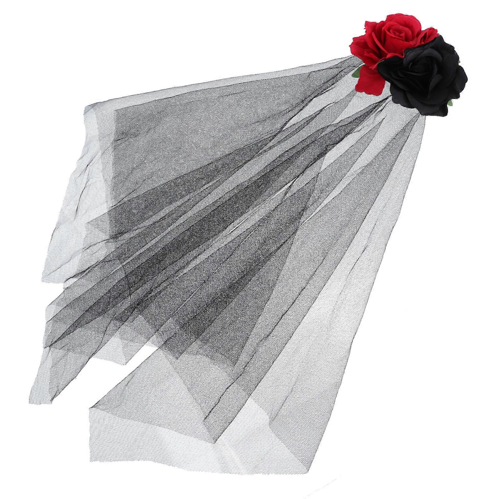 Vivid Flower Headdress with Veil for Halloween Cosplay Parties – Comfortable Spooky Bride Hair Accessory for Dress Up Events