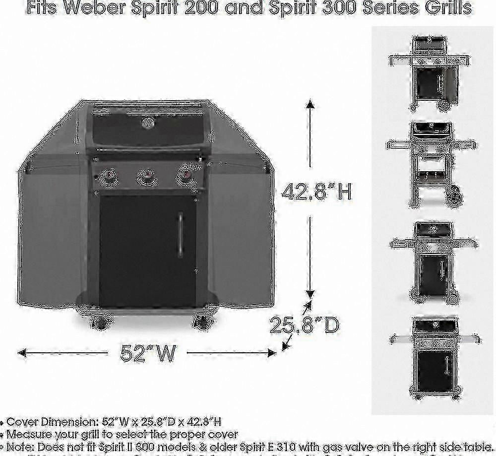52" Heavy Duty BBQ Grill Cover, Waterproof & Fade Resistant, Fits Spirit 200/300 Series, Outdoor Barbecue Protector