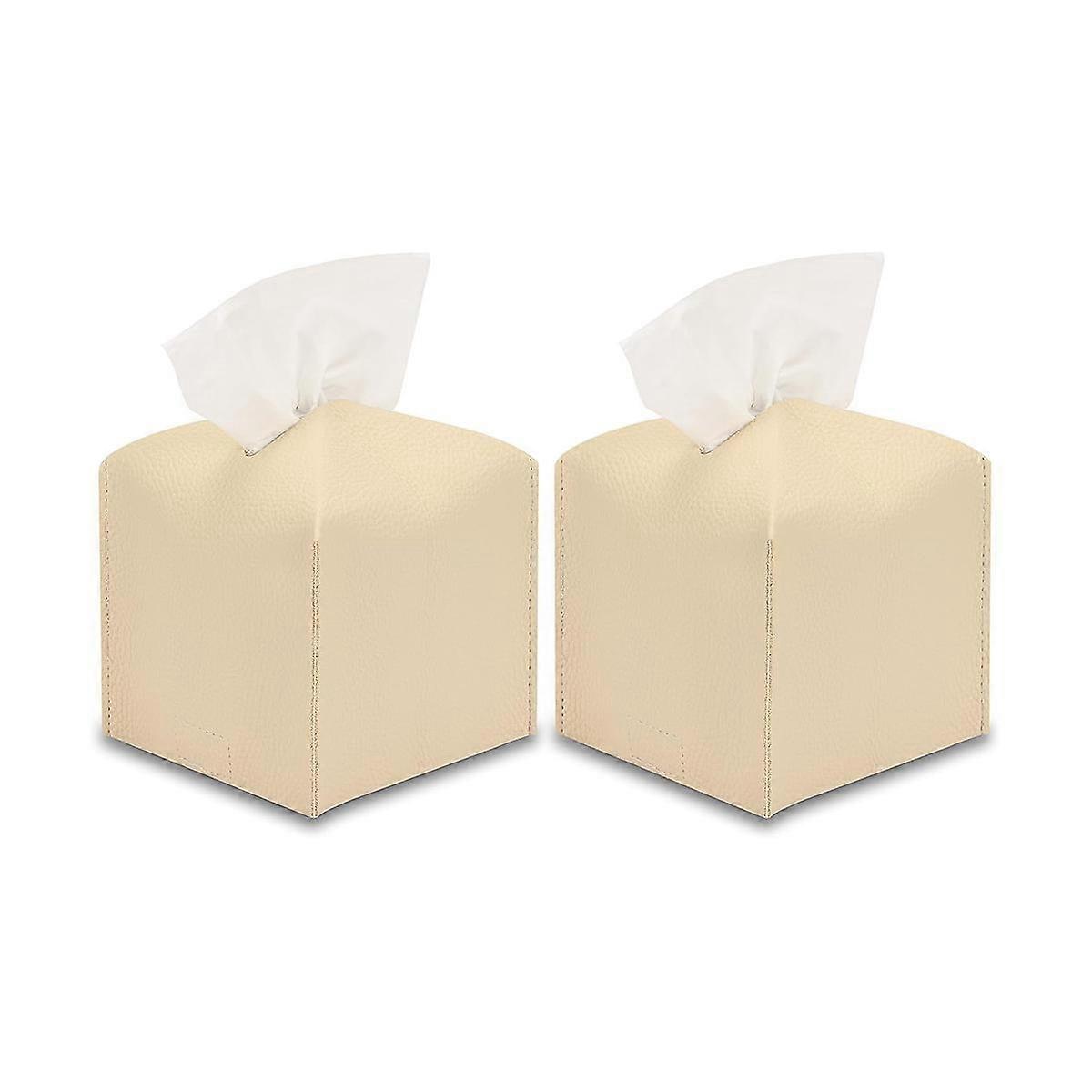 Tissue Box Cover, 2Pcs Decorative PU Leather Square Tissue Box Holder, Waterproof, for Bathroom, Ca