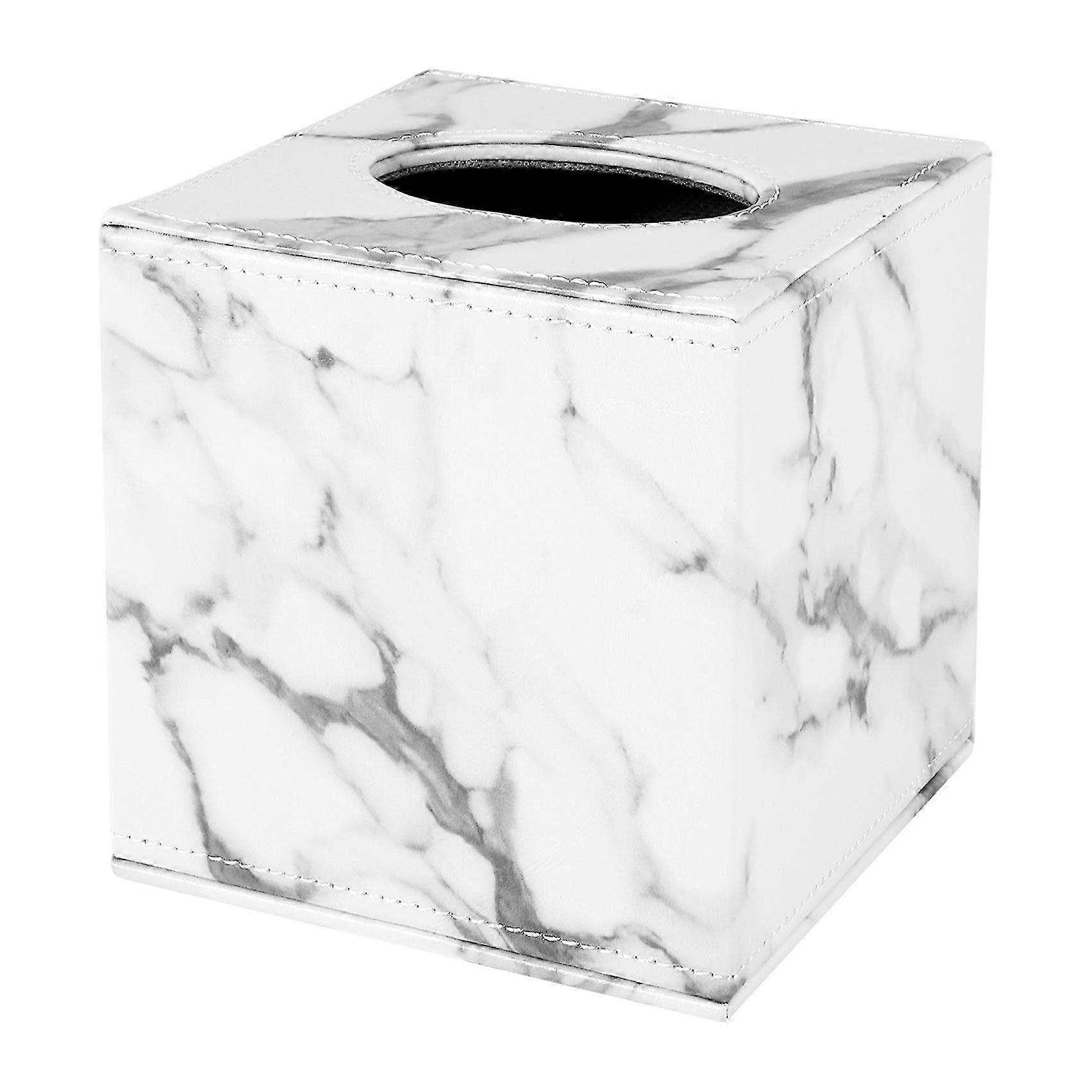 Square PU Leather Tissue Box Cover with Lock, Napkin and Toilet Paper Holder for Bathroom Home Decor