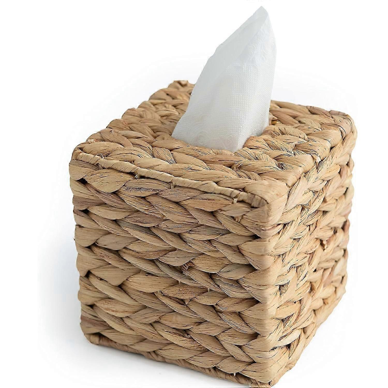 Hand - Woven Water Hyacinth Tissue Box Cover, Square Rattan Tissue Holder for Home Decor, Natural Wicker Facial Tissue Container
