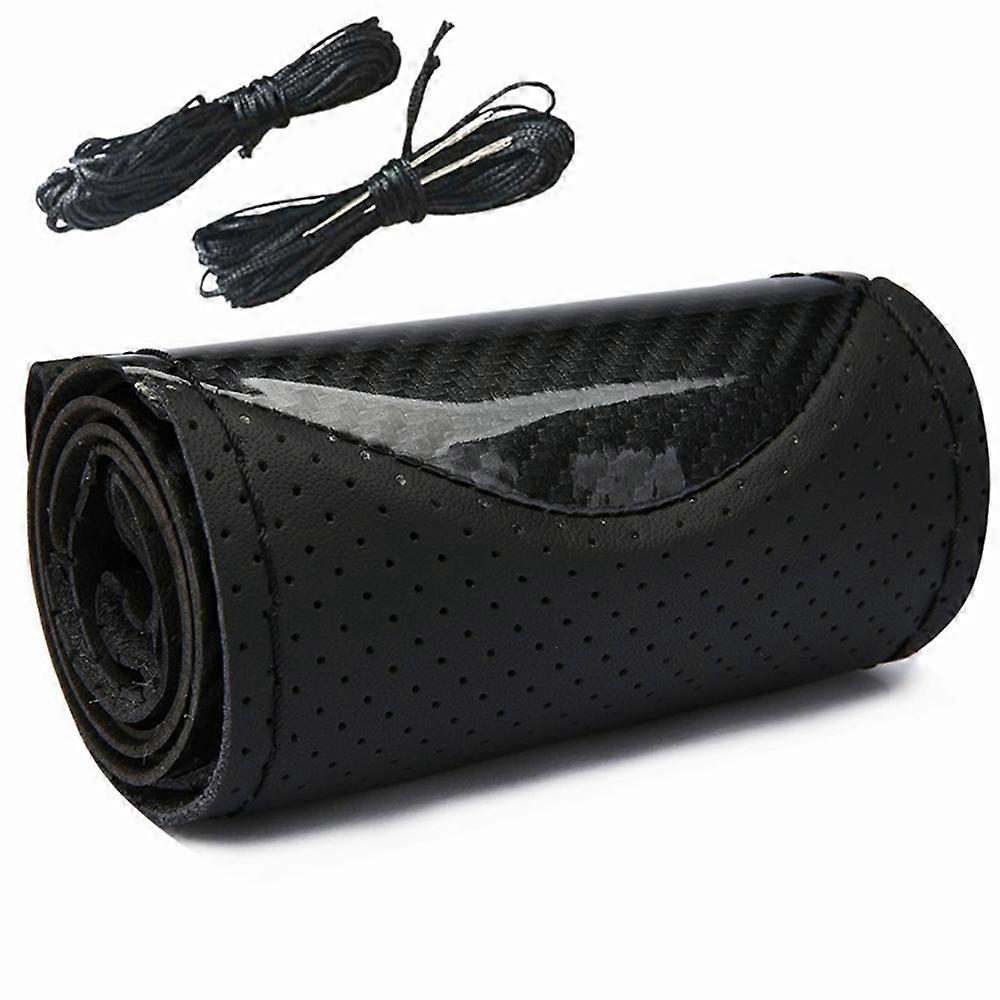 Carbon Fiber Car Steering Wheel Cover SeW DIY Hand Stitch PU Leather Protector Braiding Cover For Steering Wheel 38 cm