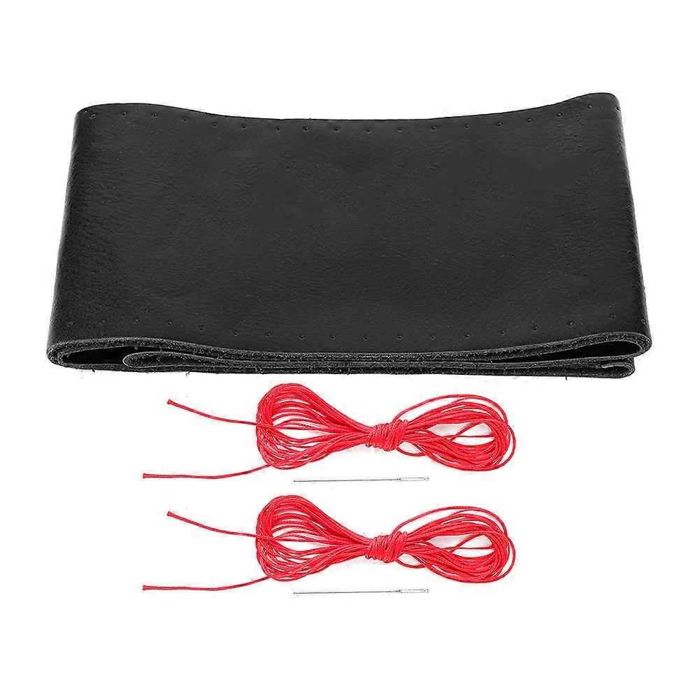 38cm 15in Car Steering Wheel Cover Non-Slip Perforated Leather Hand Stitching Wrap with Needle Thread(Black Red )