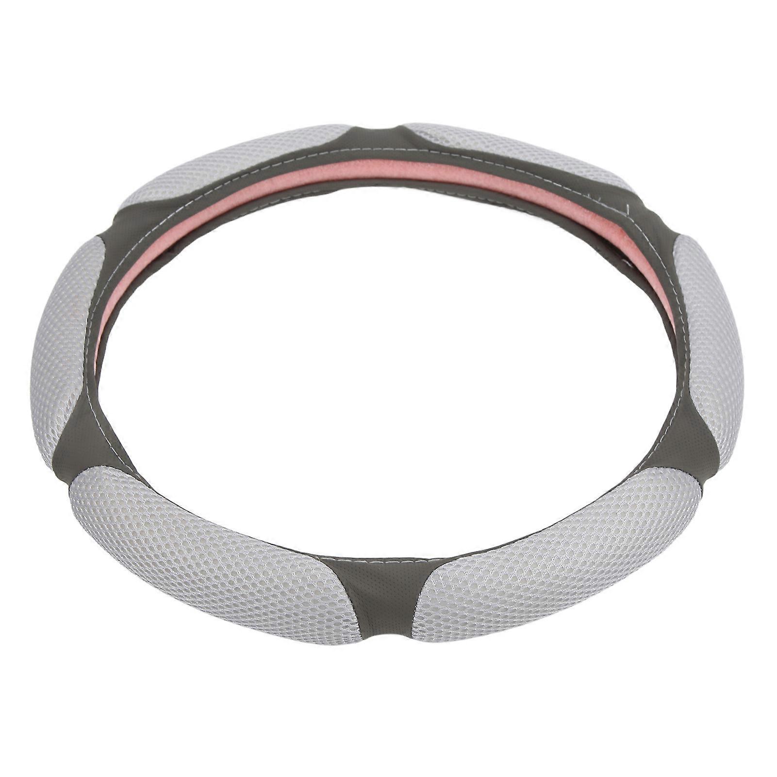 15in Round Steering Wheel Cover Artificial Leather Breathable Ice Silk Nonslip Universal for 3738cm Steering WheelsGrey