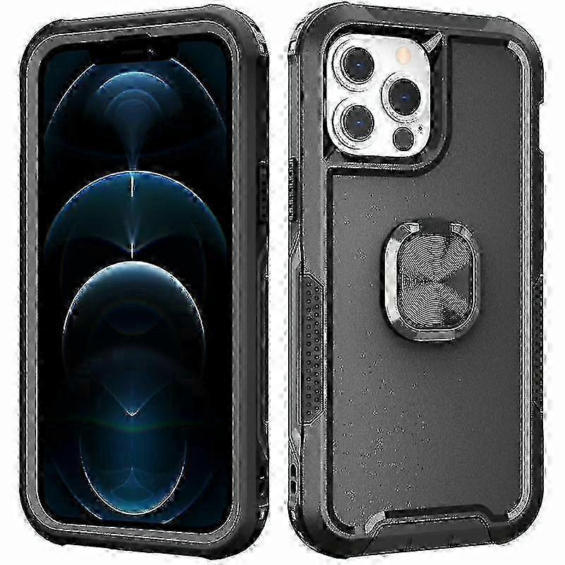 Cover case For Iphone 12 Pro Max 3 Pcs In 1 Pc + Tpu Phone Cover Case With Ring Holder(black)