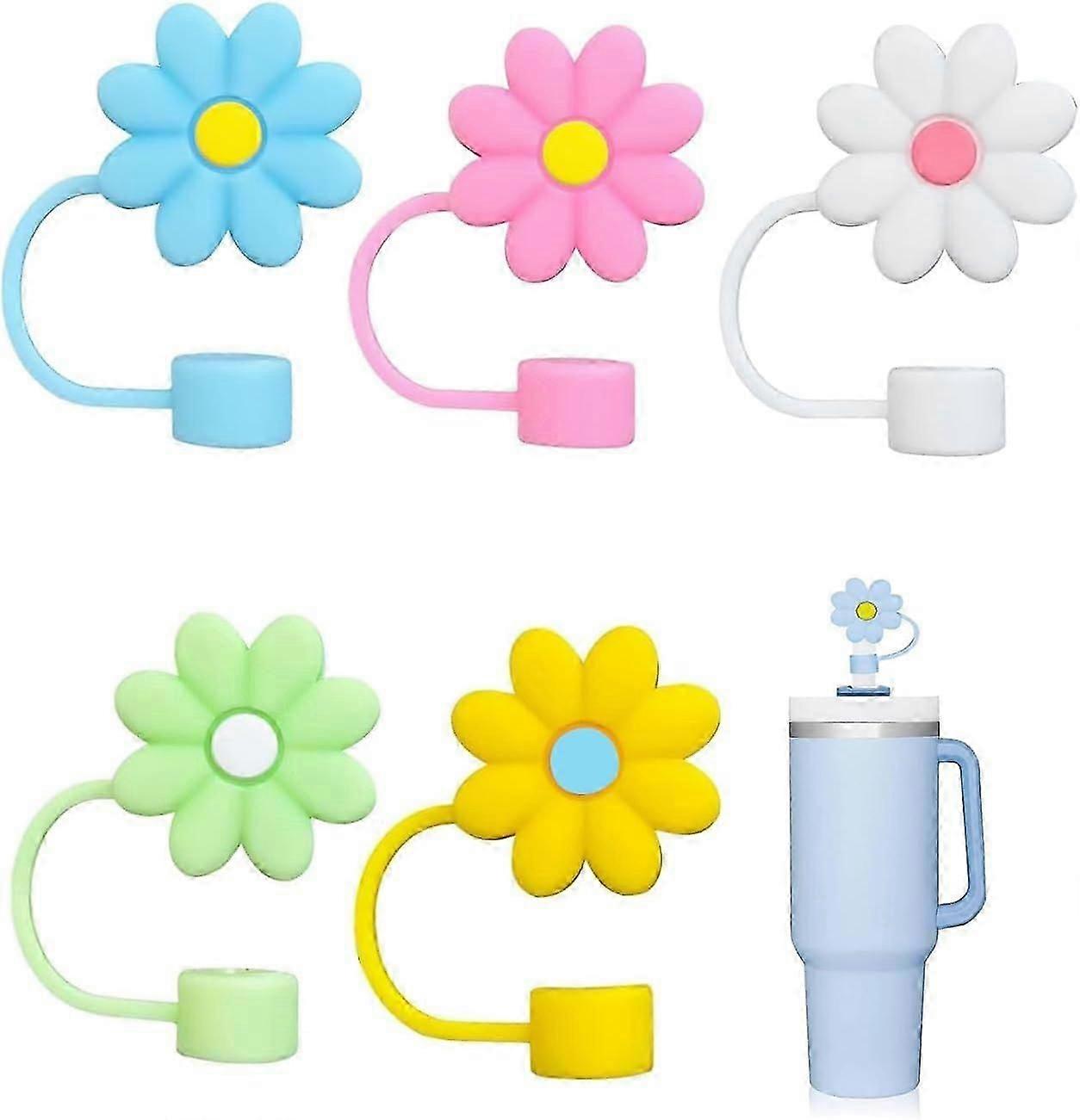 Straw Cover Cap for Stanley Cup, 5Pcs 0.4in Diameter Cute Silicone Straw Covers, Dust-Proof Straw Topper Compatible with 30&40 Oz Tumbler with Handle,