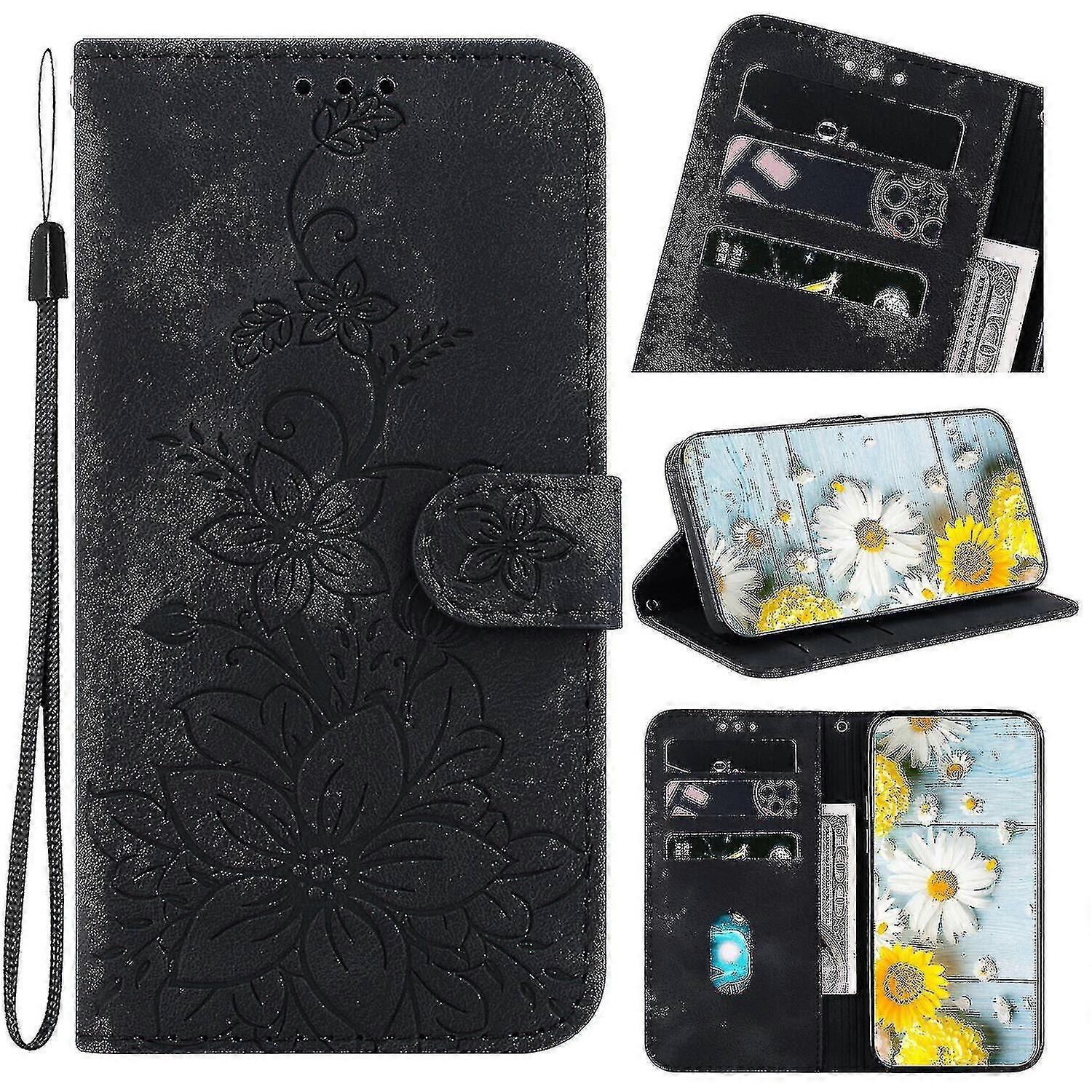 Case For Oppo Reno 10 5g Embossed Lily Flip Wallet Premium Pu Leather Cover With Card Holder Compatible With Oppo Reno 10 5g K17