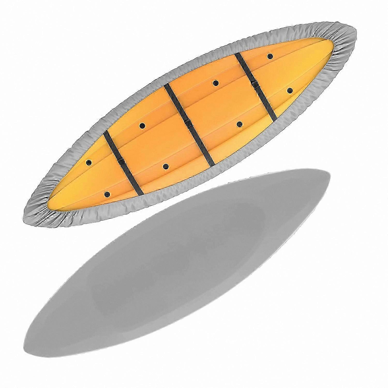 [Premium Material, Efficient Protection] Upgraded 420D thick and durable Ox fabric with silver coating offers enhanced waterproof performance and UV resistance. Protects your kayak from sun, rain, snow, and dust. Ideal for off-season storage and seasonal protection to extend the life of your kayak. [Suitable for a Variety of Kayaks] Premium marine-grade 420D kayak cover for indoor and outdoor use. Measure your kayak's length and select the correct size cover. [Easy to Put On and Secure] Built-in loop elastic drawcord allows for quick and secure fitting. Three adjustable buckle straps ensure a tight fit, increase coverage by 20%, and help prevent the cover from blowing off or folding. [Easy to Store] Comes with a drawstring storage bag for convenient carrying and compact storage. Lightweight and portable, ideal for travel. [Wide Use] Perfect for long-term storage or as a quick protective cover. Effectively blocks dust, pollen, and debris from entering your kayak. Provides reliable protection for kayaks, fishing boats, canoes, and paddleboards. Fits 10.2-11.5 ft watercraft. Material: 420D Ox cloth. Color: Grey. Package Contents: 1 x Kayak Cover. Note: Light and display settings may cause slight color variation between the image and the actual item. Measurement may vary by +/- 1-3 cm.