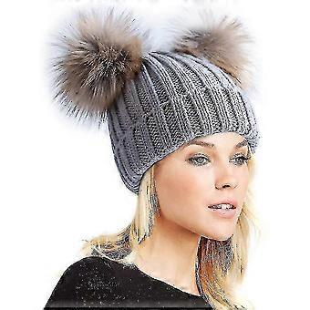 Women's Winter Double Bonnet Bonnet Wool-lined Pom Pom Hat Knitted Faux Fur Bonnet-2025-ss