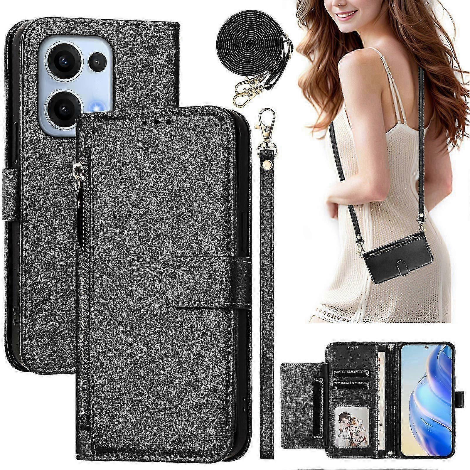 Soft PU Leather Zipper Wallet Cover for OPPO Reno 13 5G with Flip Case and Long Strap for Protection