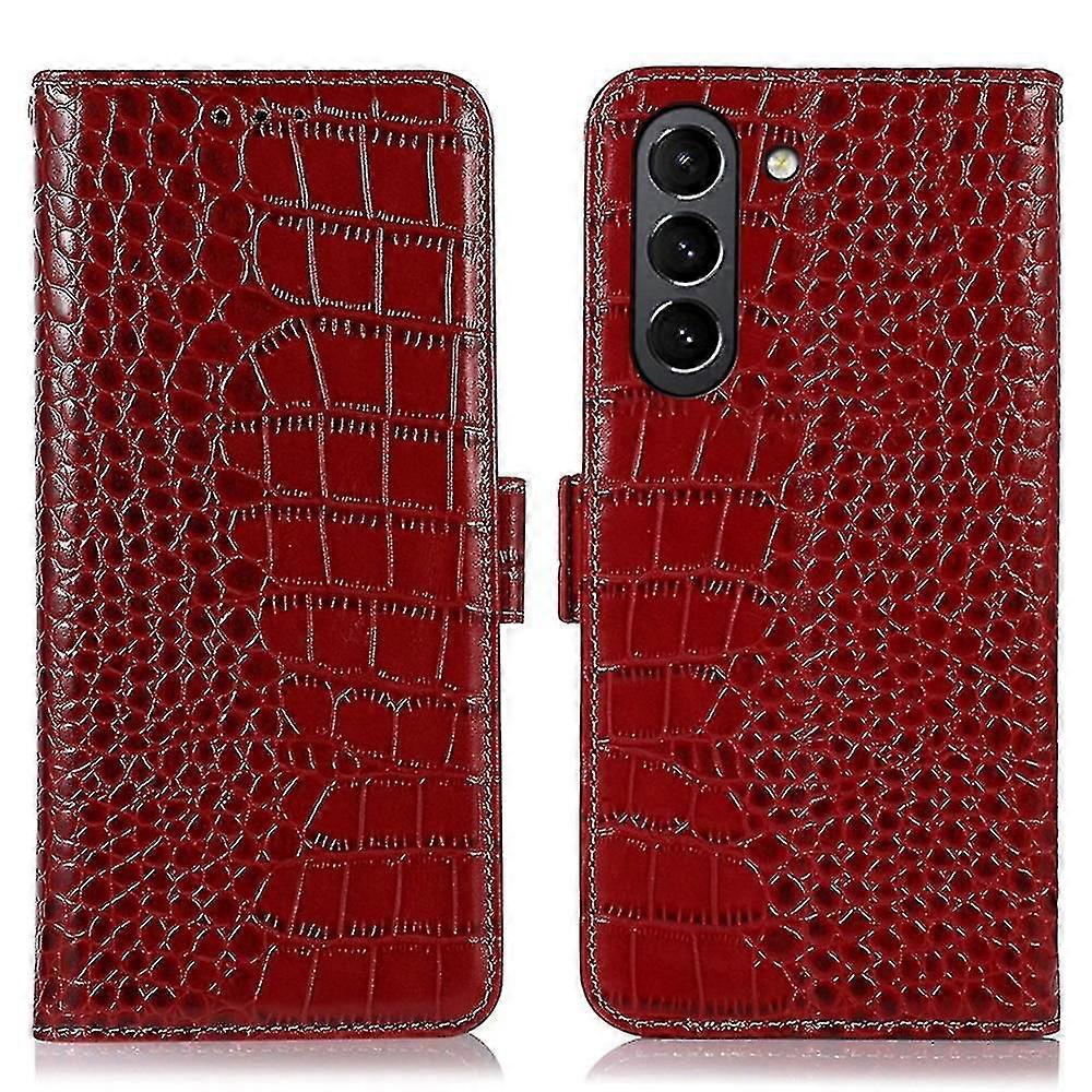 For Samsung Galaxy S21 FE 5G RFID Blocking Genuine Cowhide Wallet Phone Cover,Crocodile Foldable Cas