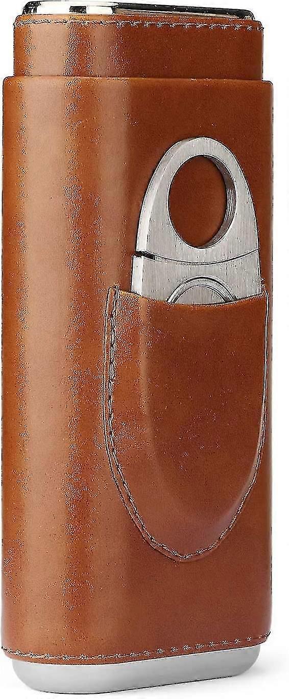 Premium Cigar Humidor Case Made Of Leather - Leather Case For 3 Cigars | Includes Cigar Cutter | Cedar Wood Interior Finish