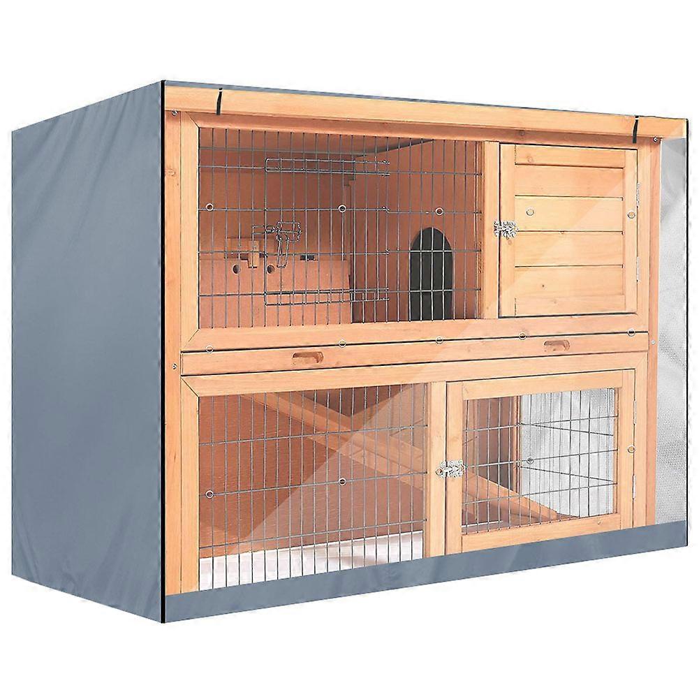 Oxford Cloth Double Layer Rabbit Hutch Dust Proof Cover Accessory for Poultry Cage(gray )