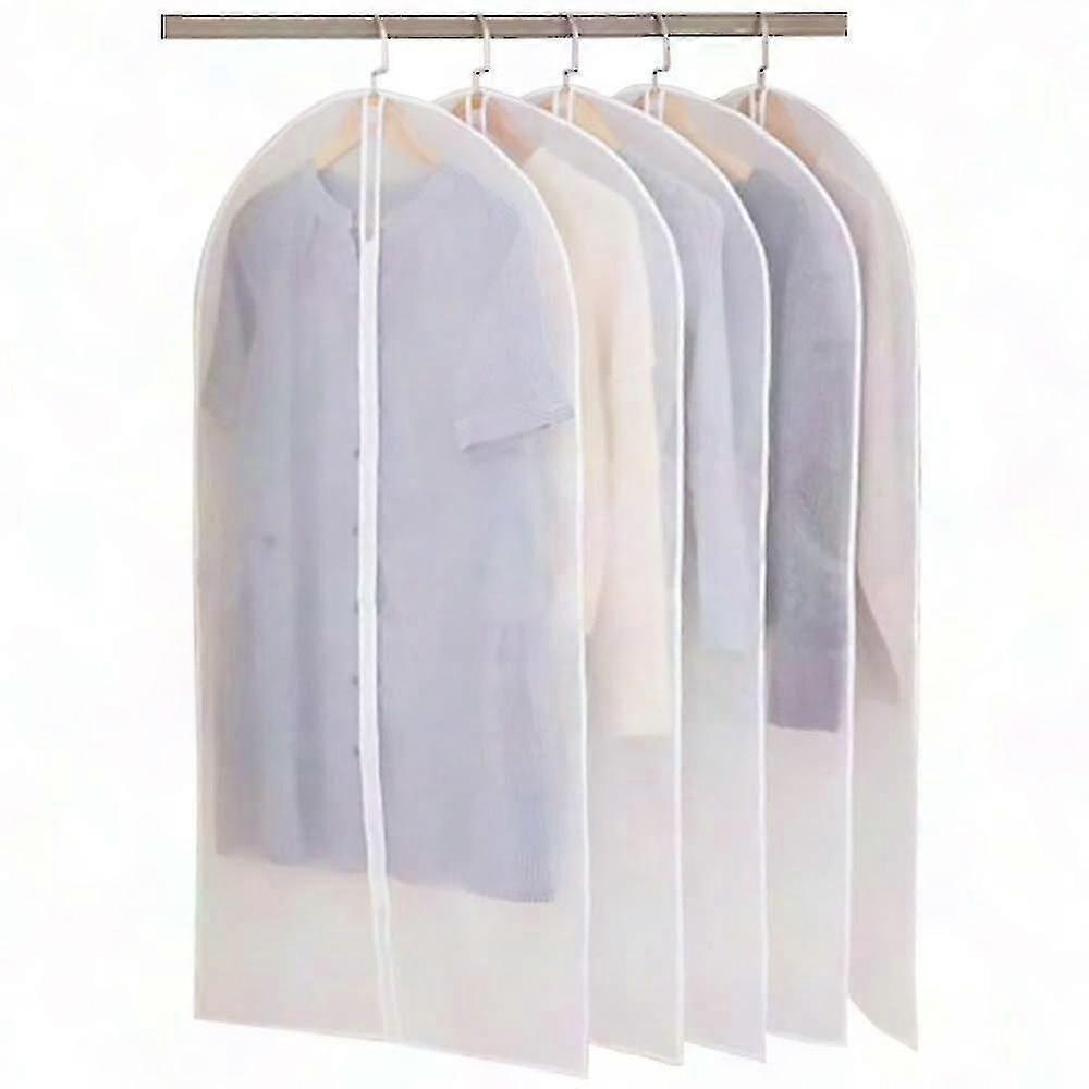 TRANSLUCENT PEVA MATERIAL: it is lightweight but durable; with a full length zip and tear-proof edge; semilucent clothes covers can effectively organize your clothes after storage.PROFESIONAL PROTECTION: Dust-proof, mildew-proof; avoid clothes color fading, out of shape, keep them clean, tidy and wrinkle free.GARMENT BAGS DURABLE ZIPPER: The zipper is carefully lined and reinforced, it can move smoothly and quickly, and does not get stuck. Both sides of the zipper were sewn. Perfect for suits, shirts, dresses, coats, jackets, uniforms and all your storage and travel needs. If unzipped, they can also be used as furniture coversWASHABLE AND RECYCLABLE: easily washed or wipe clean, if you don't need to use them, just fold the bags into small size and store, it can be reused for a long time.