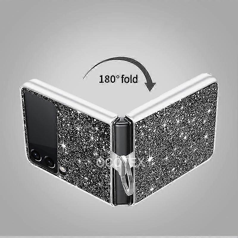 Glitter Phone Case Compatible Samsung Galaxy Z Flip 4 With Ring Holder Stand, Shine Case For Woman Girl