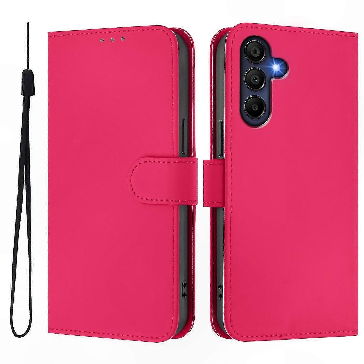Solid Color Wallet Leather Phone Cover with Strap for 5G Smartphones
