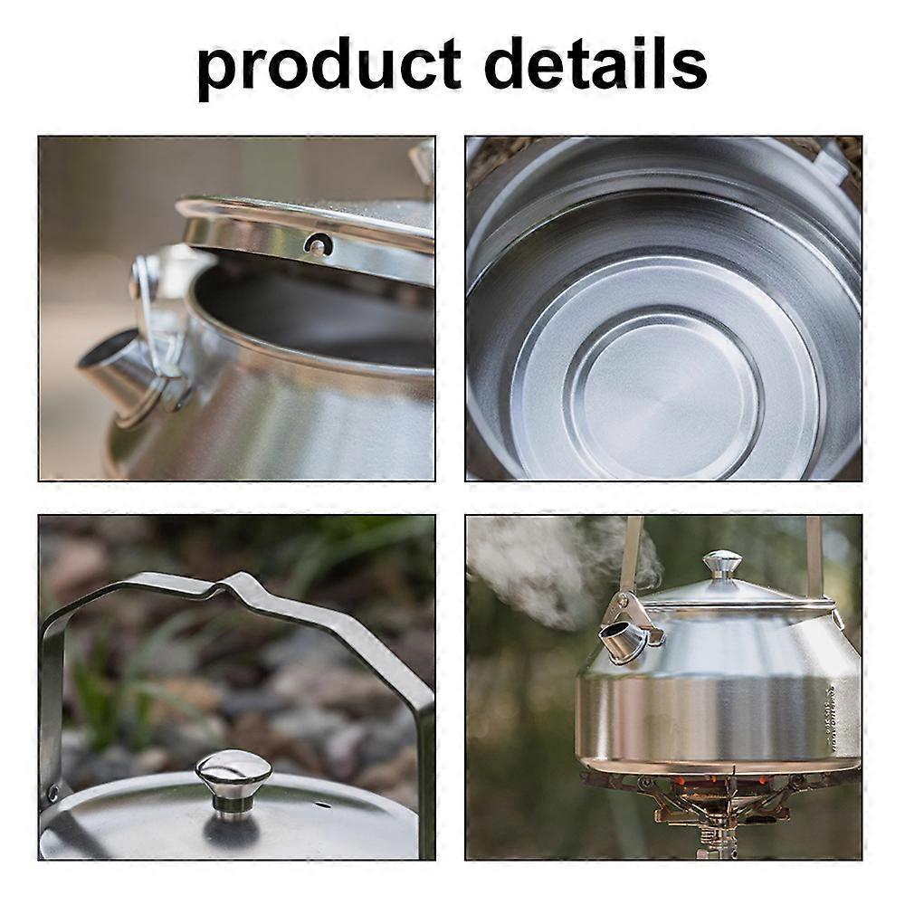 Outdoor Stainless Steel Kettle AntiScalding Handle Camping Coffee Kettle Portable Coffee Pot Picnic Cooker 1L Teapot Cooking Accessory
