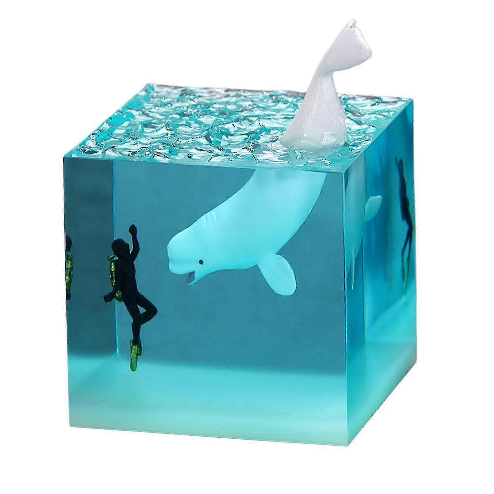 Diver Cube Statue Decor Underwater Scene Figurine for Kids Bedroom Bookshelf Style A