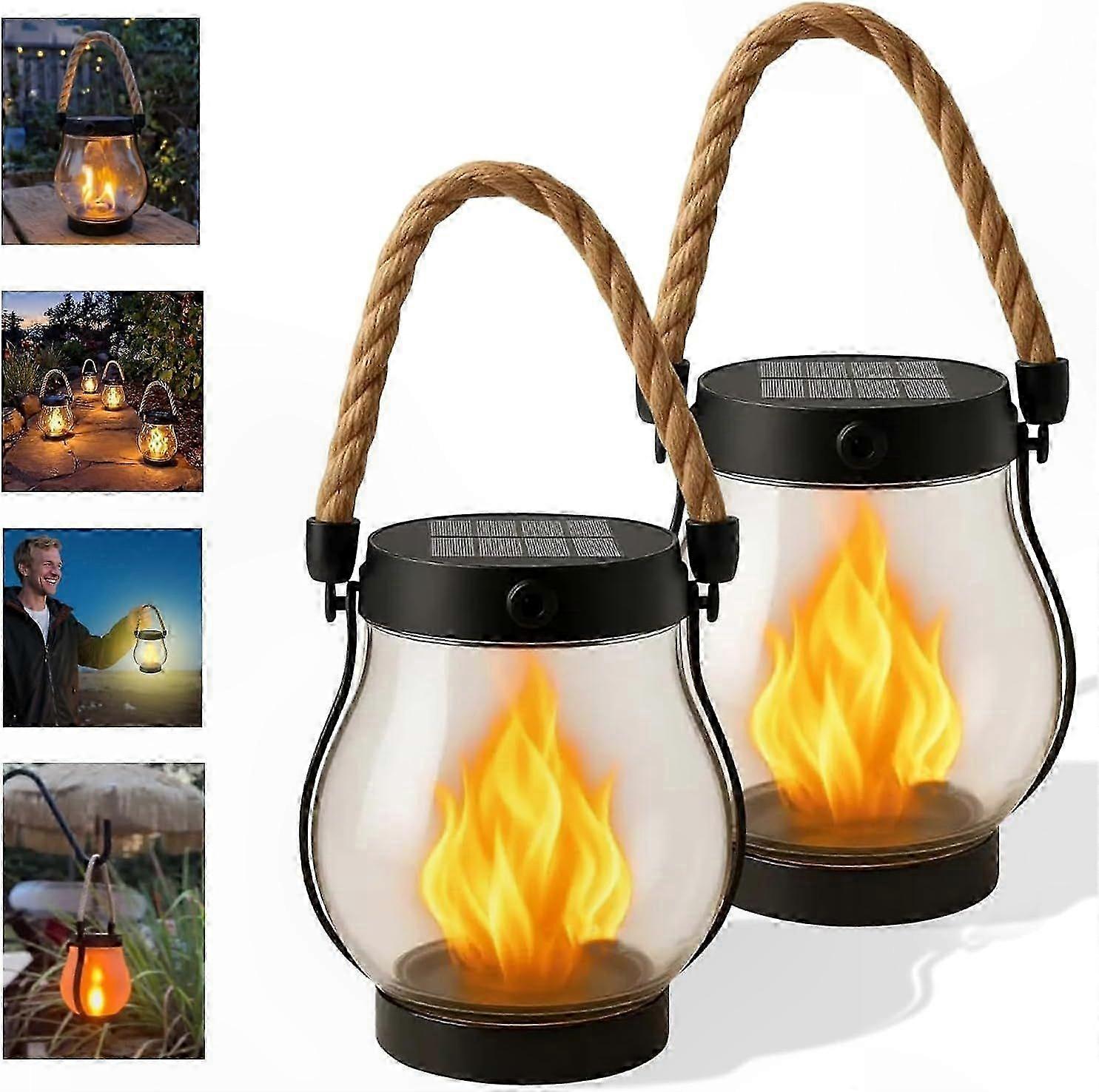 Hanging Solar Flame Lantern for Outdoor Garden and Camping Decor with Hemp Rope Design