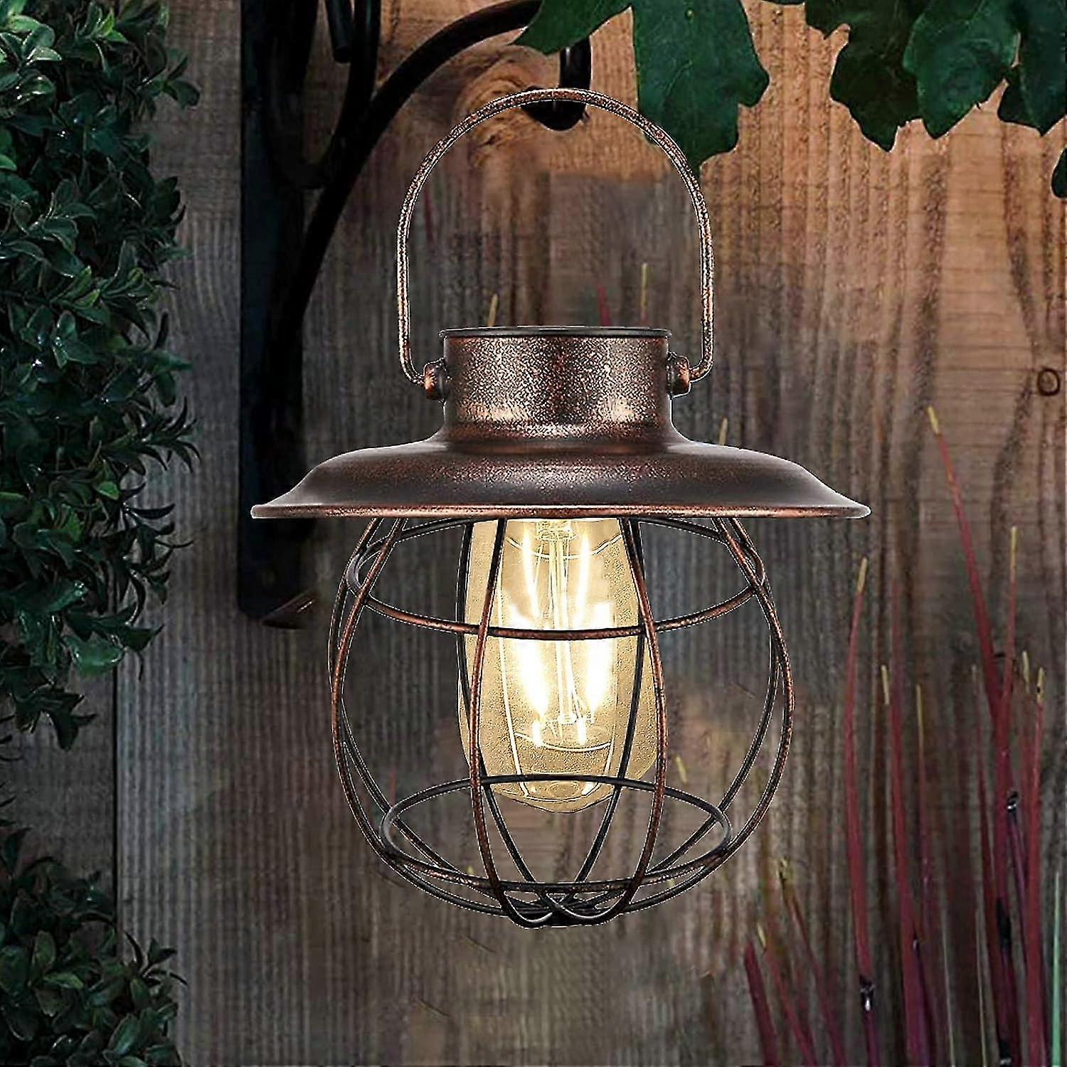 Outdoor Hanging Solar Lantern with Hook, Vintage LED Solar Garden Light, Steel Cage, IP65 Waterproof, Cordless Rechargeable for Garden Patio Courtyard