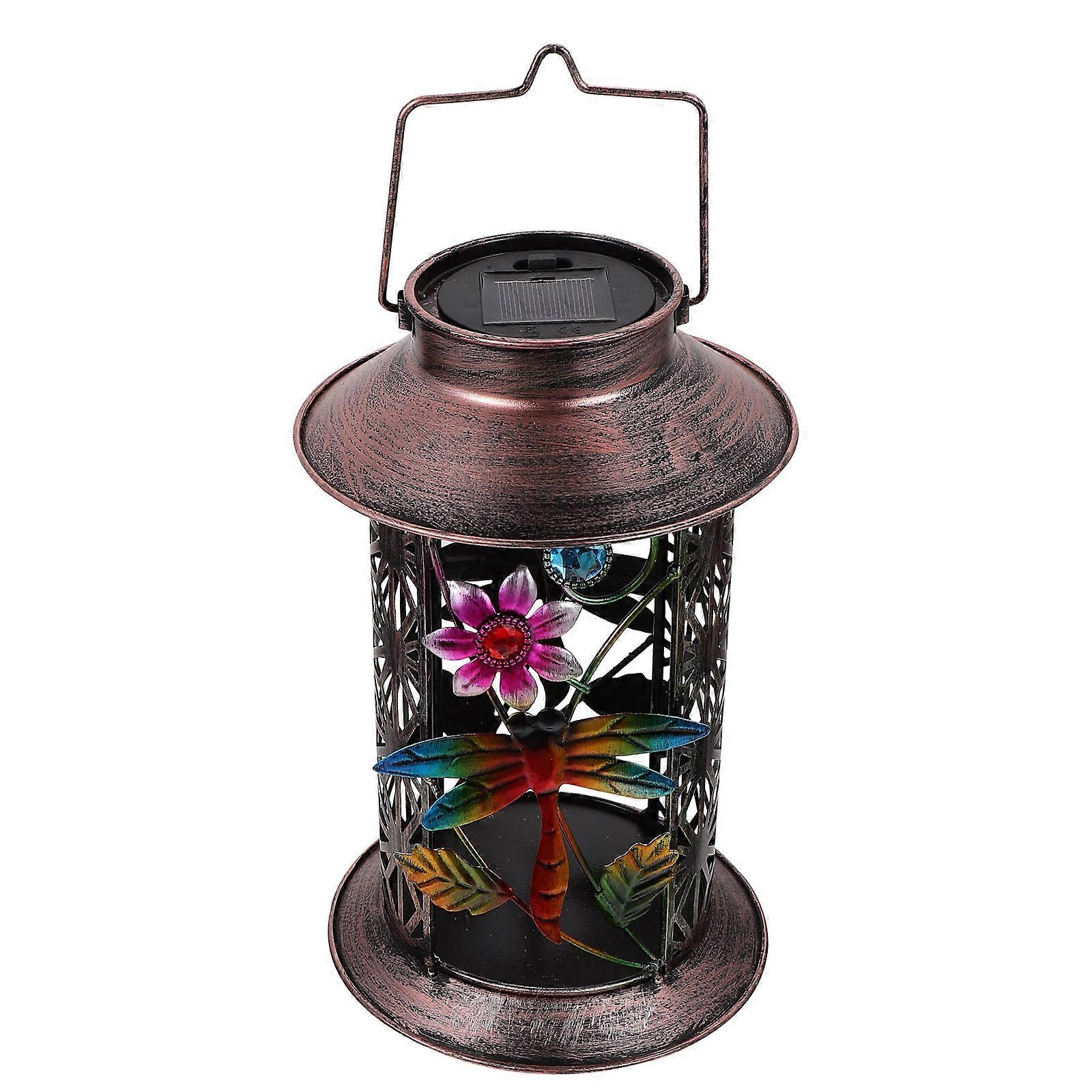 Solarpowered Lantern for Decor with Dragonfly Pattern Hollowout Design Multi Color Iron 1Pc