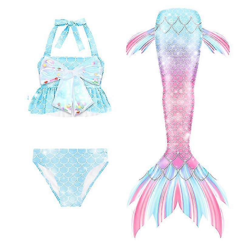 Girl Mermaid Princess Swimsuit Three-piece Set Hanging Neck Sling With Tail Shiny Scales Swimming Suit Hot Spring Dress Up