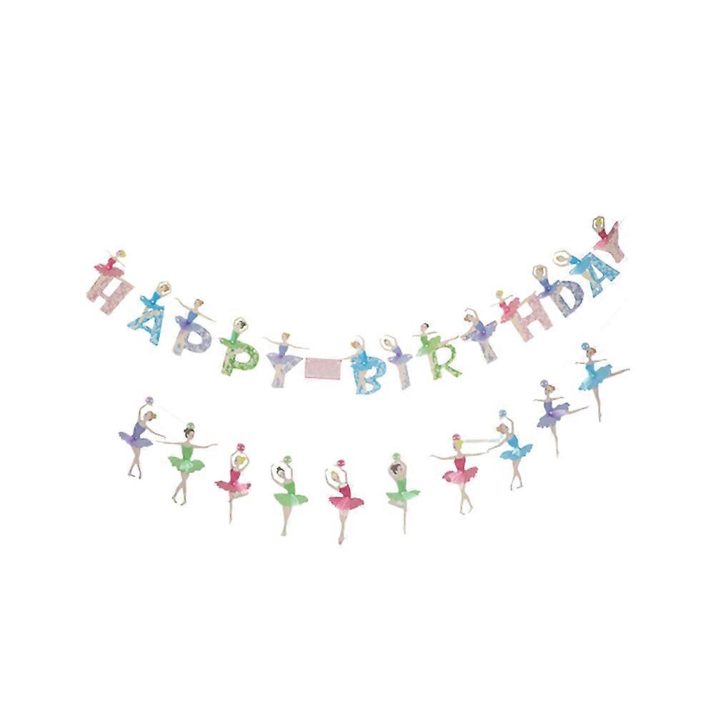 Girl Birthday Decorations Ballerina Girl Dancing Banner Kids Party Background Hanging Assorted Color 2Pcs
