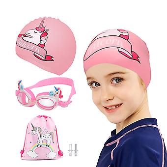 Girl's Unicorn Anti-fog Silicone Swimming Cap Swimming Goggles Silicone Earplugs With Storage Bag