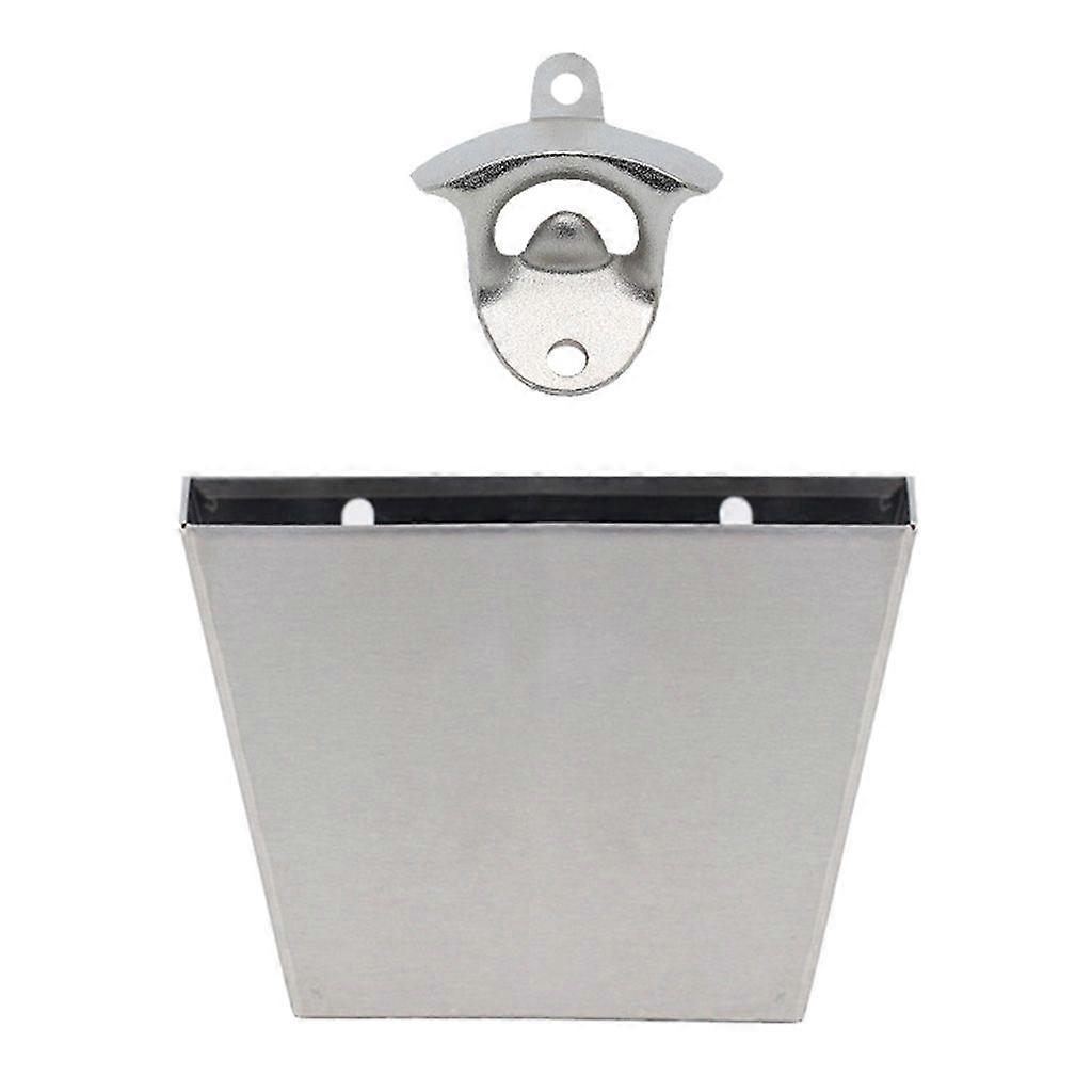 Wall Mounted Beer Bottle Opener with Cap Catcher Container Box Storage Holder Co