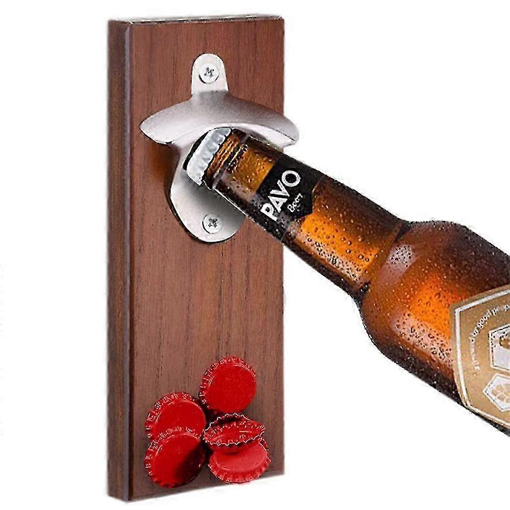 Wall Mounted Bottle Opener With Magnetic Cap Catcher, Refrigerator Mount With Magnets Housewarming Giftsbeer Gifts For Men Birthday Presents