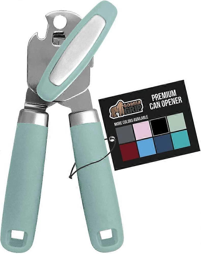Manual Can Opener, Handheld Comfortable Grip, Oversized Easy Turn Knob, Built in Bottle Opener, Hangs for Convenient Kitchen Storage, Green