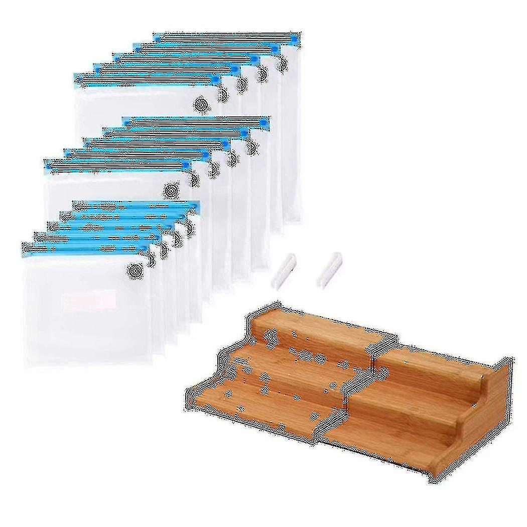 Never put it into dishwasher or submerge itcolour: blue + white/wood colorMaterial: PE+PA/bambooSize: About 22-38cm long (retractable size), 21cm wide, 8cm highPackage Contents:1 x Spice rack15 x vacuum bags (large/medium/small each 5)2 x clipsOnly the above package content, other products are not included.Note: