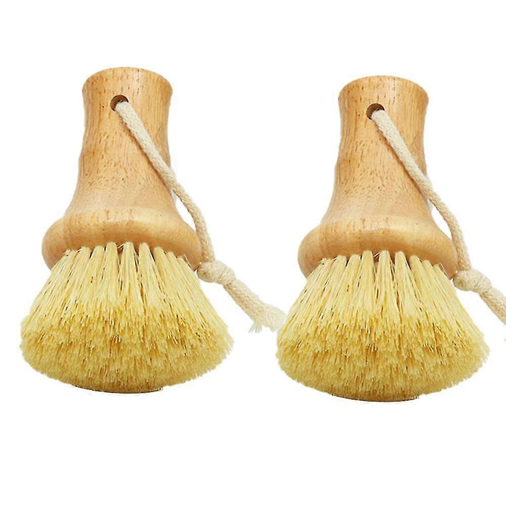 Dish Brush With Bamboo Handle Built-in Scraper, Scrub Brush For Pans, Pots, Kitchen Sink Cleaning, Pack Of 2