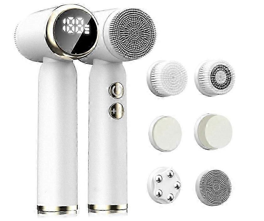 Facial Cleansing Brush - Electric Spin Scrubber with 3 Exfoliating Brush Heads - 3 Speed Levels, LCD Display - Waterproof Facial Brush(White)
