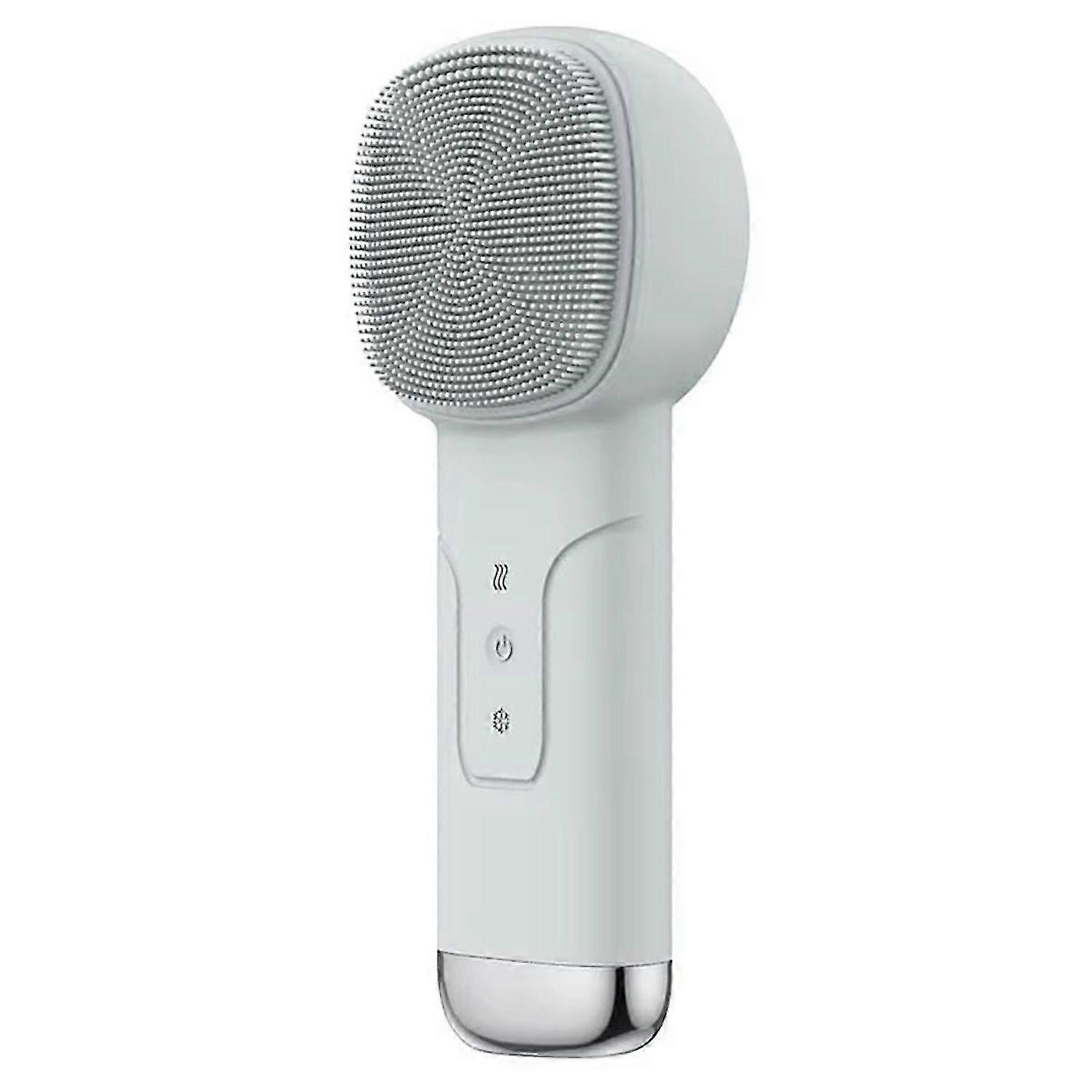 6-in-1 Facial Cleansing Brush with Thermal Function, Skin Cooling Massager, Silicone Facial Cleansing Device Light Grey