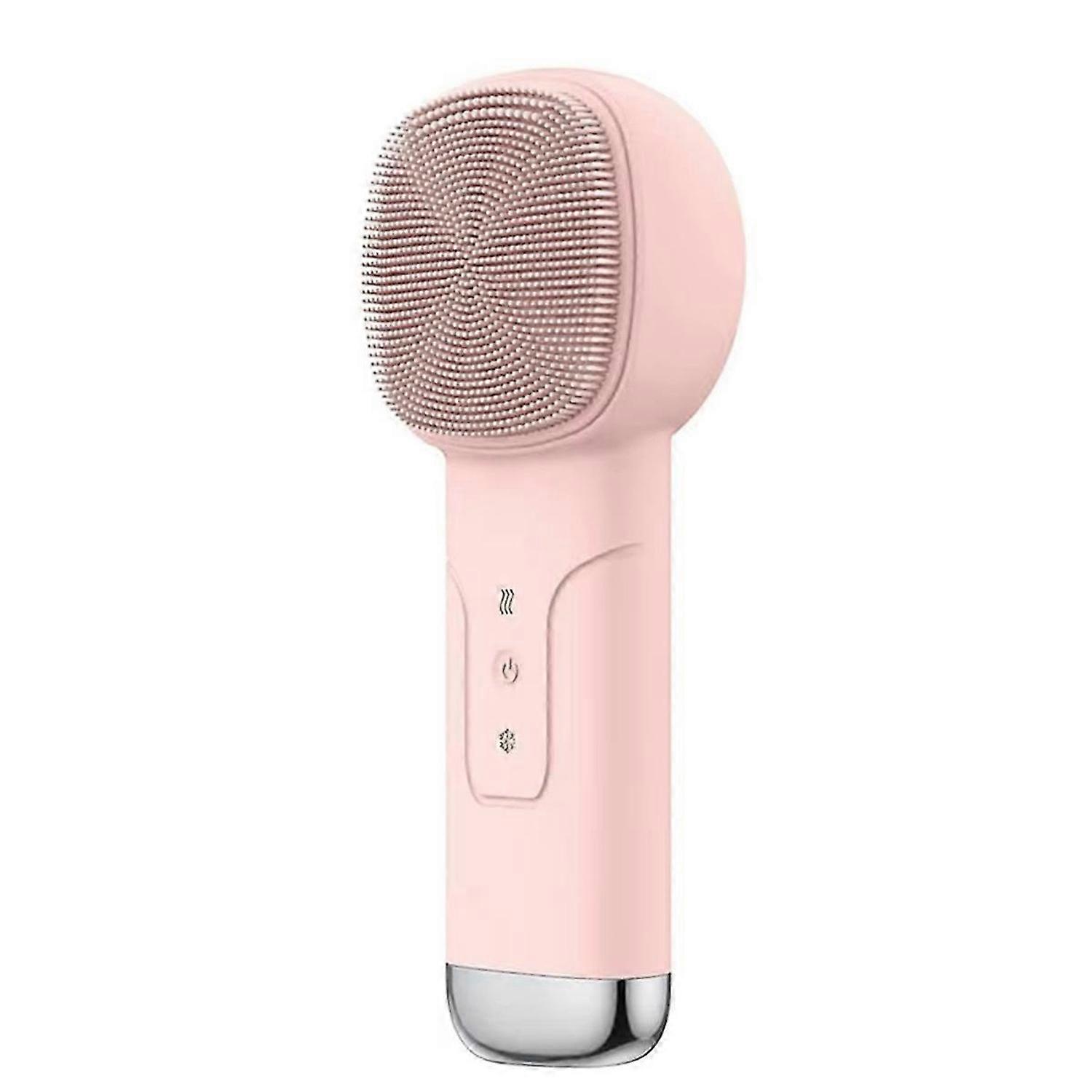 6-in-1 Facial Cleansing Brush with Thermal Function, Skin Cooling Massager, Silicone Facial Cleansing Device Pink