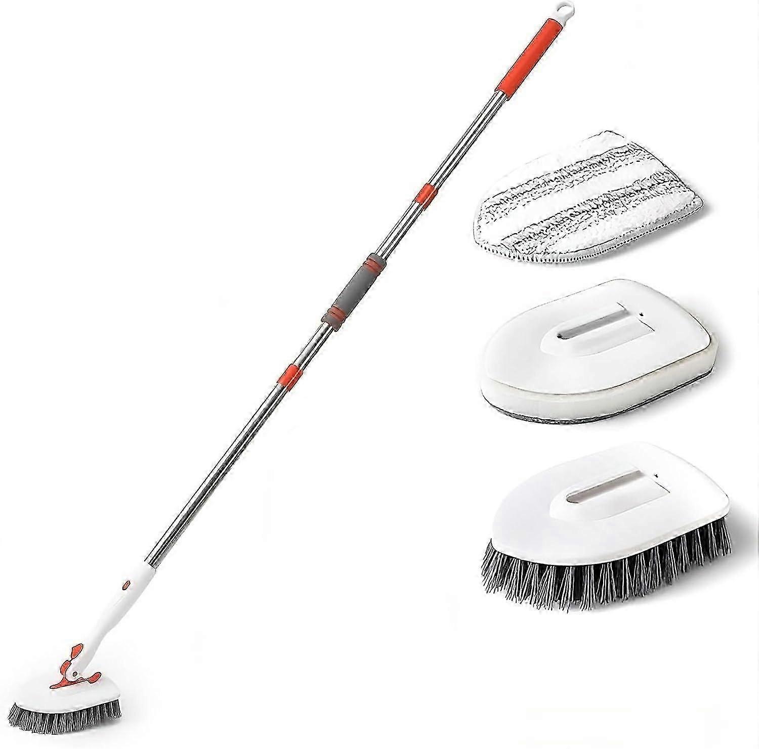Tub Tile Scrubber Brush, 3 in 1 Shower Cleaning Brush with 53" Adjustable Long Handle, Floor Scrub Brush for Cleaning Bathtub Bathroom Kitchen Toilet