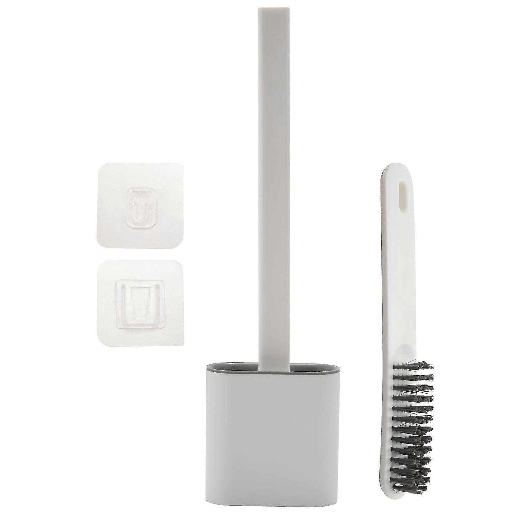 Silicone Toilet Brush With Holder With Wall Mounted Sets,flexible Bathroom Deep Clean Brush (white)