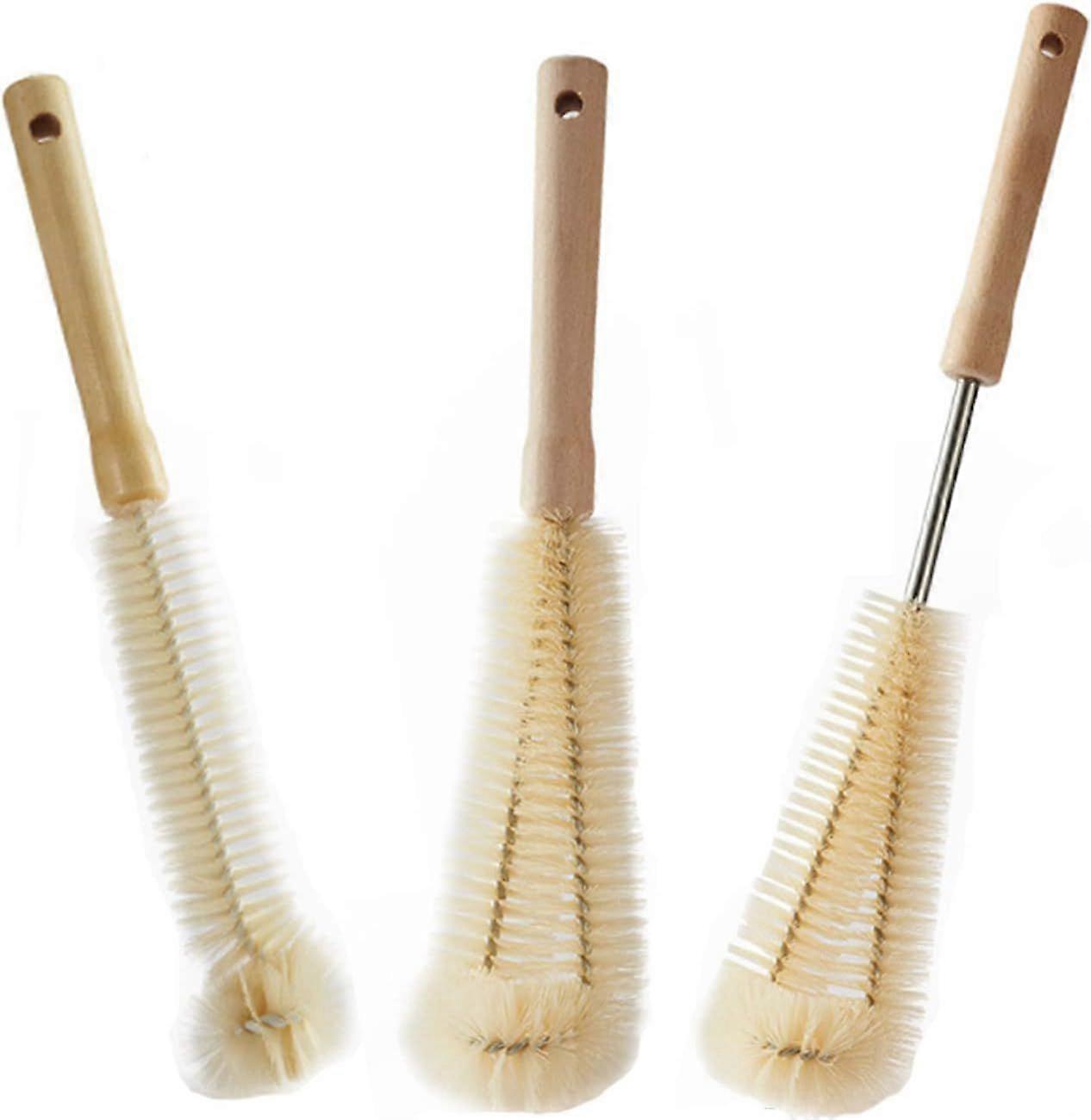 Bottle Brush - 3 Pcs with Fluffy Pom Pom Head Brown