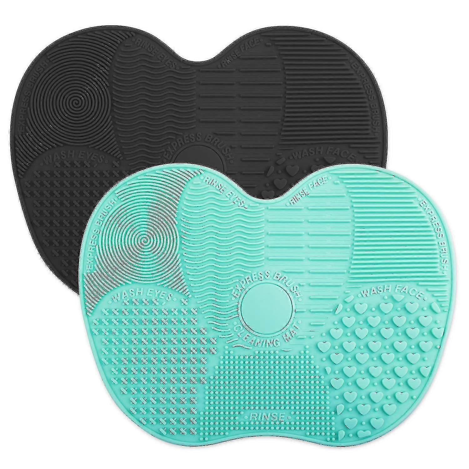 Makeup Brush Cleaning Mat, Silicone Cleaner Pad Portable Washing Tool Scrubber With Suction Cup Set Of 2 Cosmetic (green+black)
