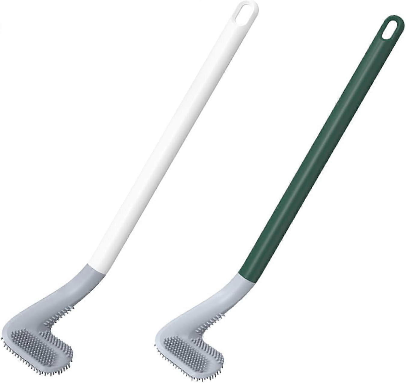 White Gray 2Pcs Golf Silicone Toilet Brush, Long Toilet Brush, Long Handle Toilet Brush With Holder