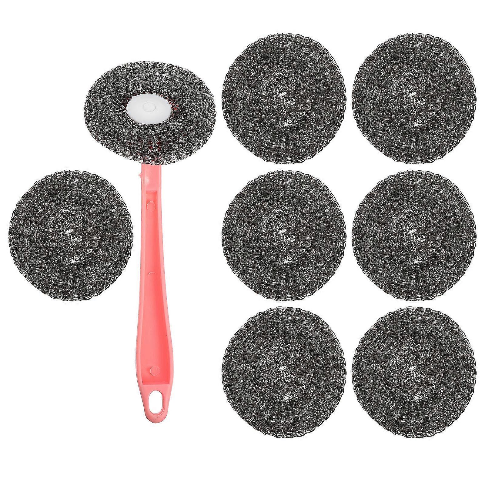 Long Handle Pot Brush 8Pcs Kitchen Sink Cleaning Brush Ideal For Families Stain Cleaning In Pink