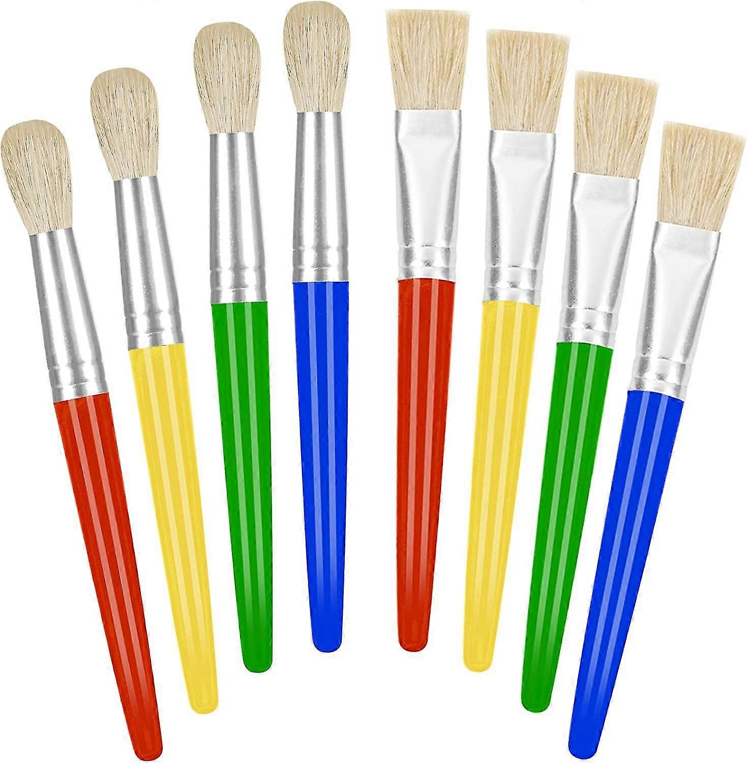 Paint Brushes For Kids, 8 Pcs Big Washable Chubby Toddler Paint Brushes, Easy To Clean Grip Round And Flat Preschool Paint Brushes With No Shed Bris