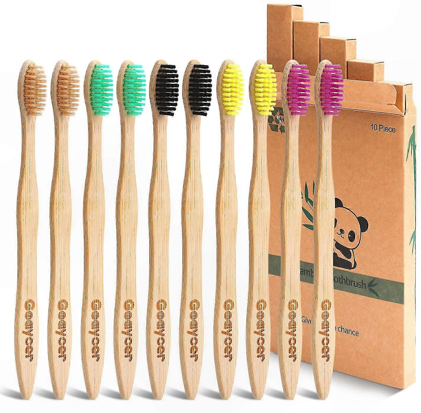Biodegradable Bamboo Toothbrushes, 10-Pack Medium Bristles, Eco-Friendly Wooden Handles, Random Color Designs
