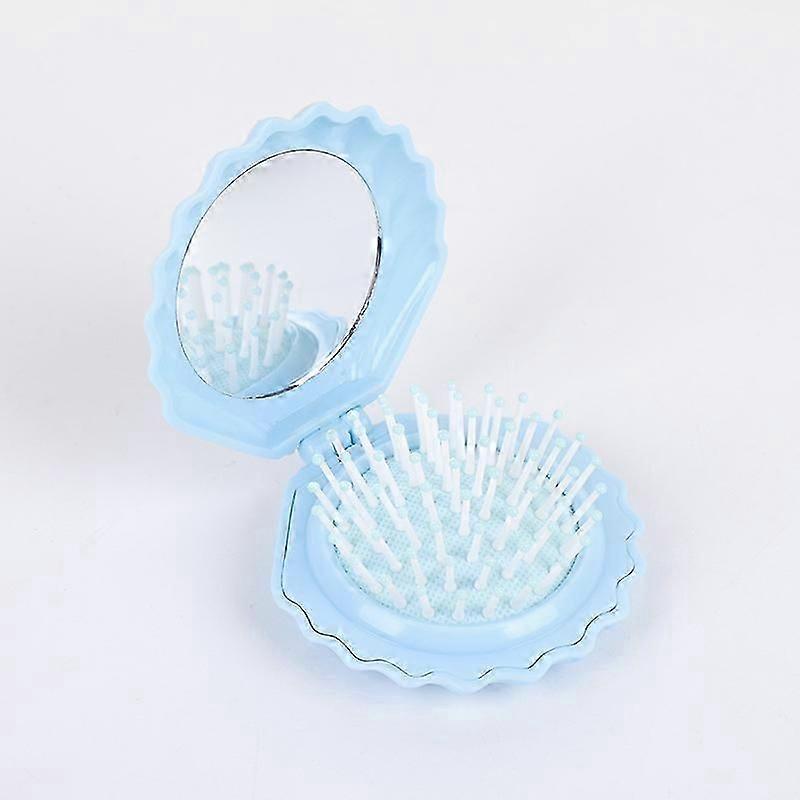 Foldable Travel Hair Brushes with Mirror Shell Shape Portable Folding Pocket Hair Brush Mini Hair Comb Compact Size Hair Massage Comb