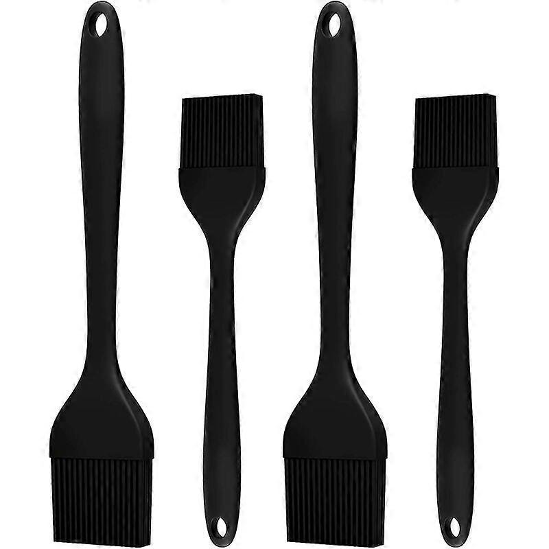 Silicone Barbecue Brushes, Kitchen Brush, Pastry Brush, Barbecue Brush for Barbecue, Cakes, Baking (Set of 4, Black)