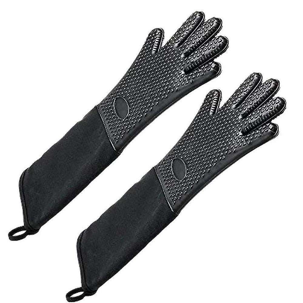 Extra Long Professional Silicone Oven Mittcompatible Kitchen - Black